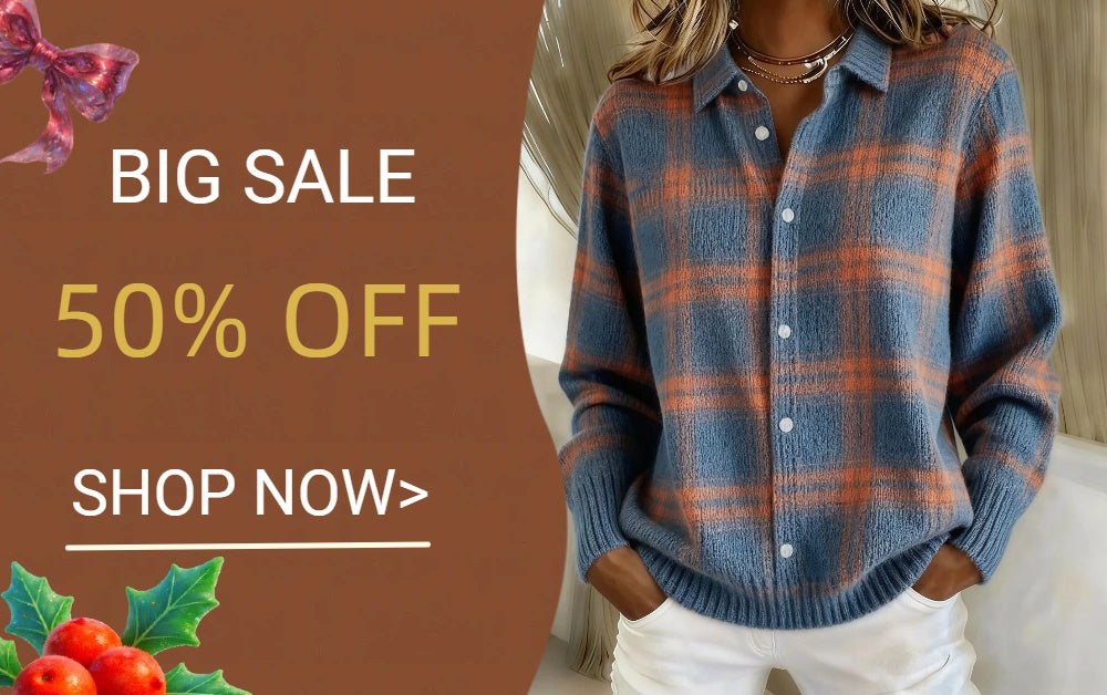 Women's Plaid Print Casual Cotton Buttoned Cardigan Sweater