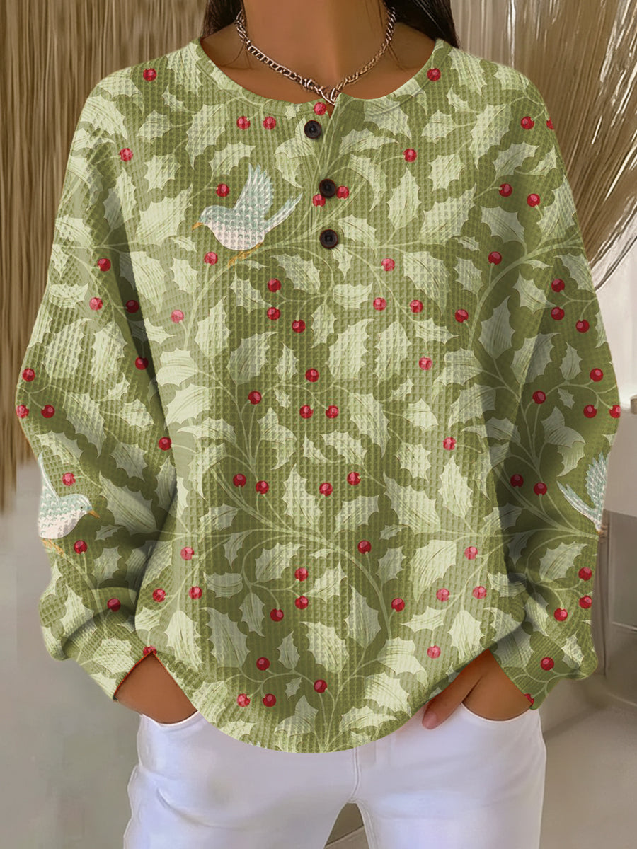 Women's Beautiful Leaves, Plants And Birds Painting Art Print Casual Cotton Sweatshirt