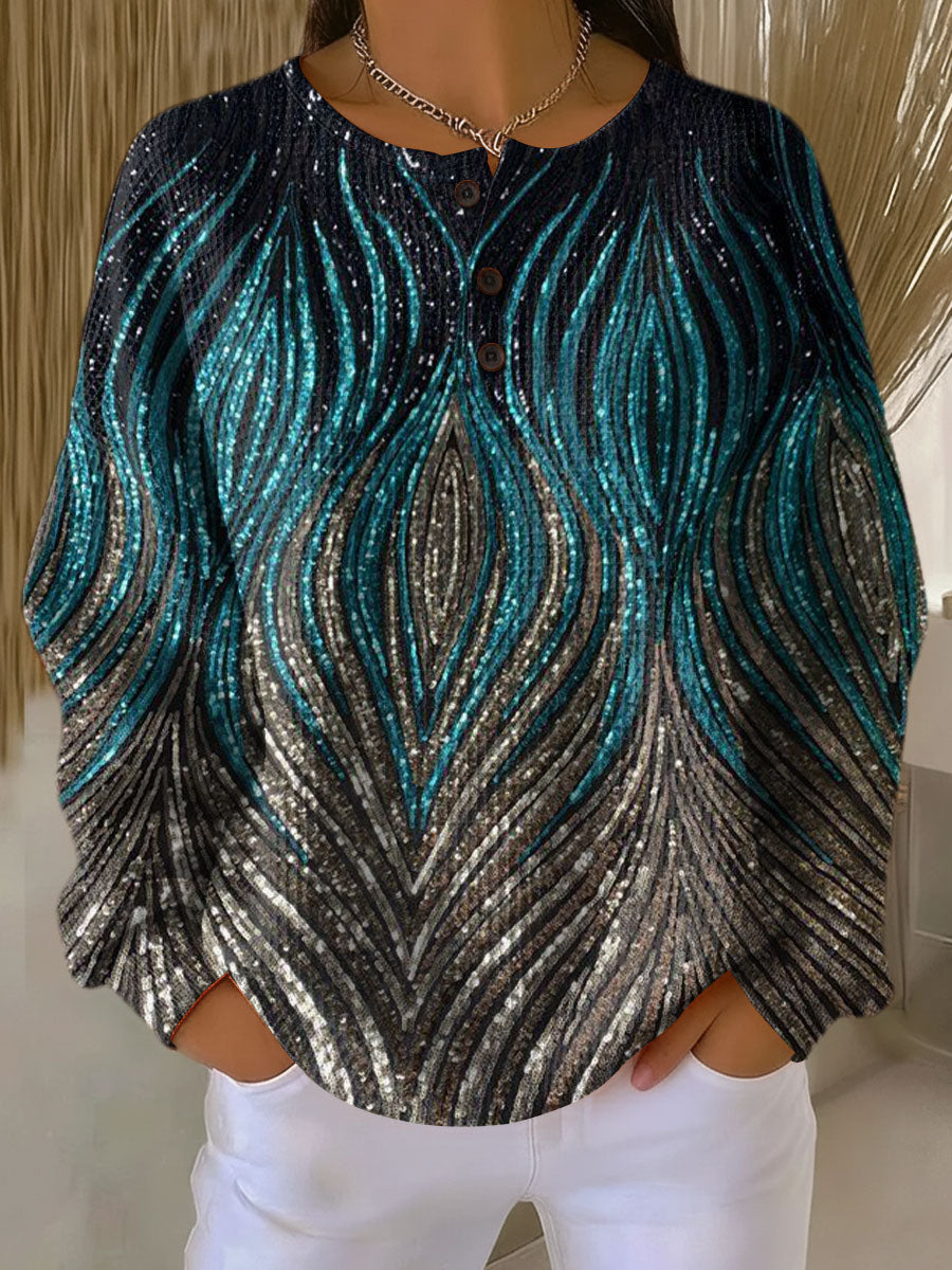 Women's Color Smudge Pattern Art Print Casual Cotton Sweatshirt
