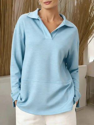 Women's Solid Color V-neck Long-sleeved Casual Loose Sweatshirt