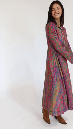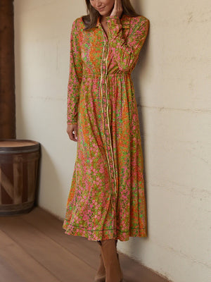Boho Rainbow Floral Print Shirt Stretch Dress