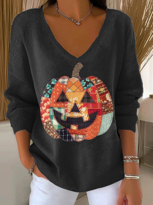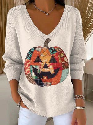 womens-funny-pumpkin-halloween-pattern-art-print-casual-pullover-sweater