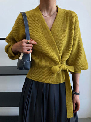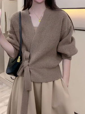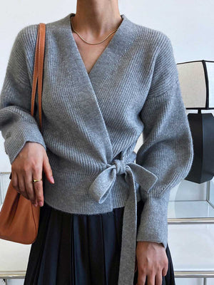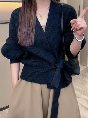 womens-solid-color-v-neck-long-sleeve-casual-lace-up-loose-sweater