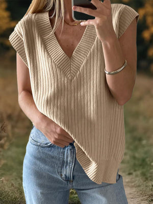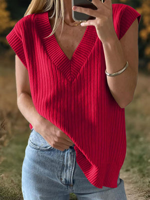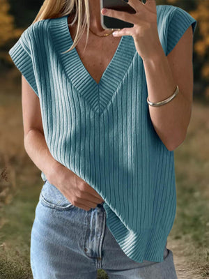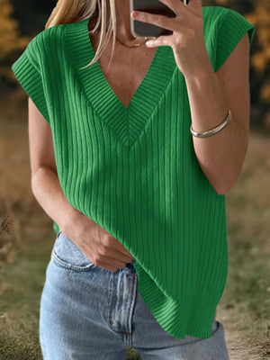 womens-solid-color-v-neck-short-sleeve-casual-loose-sweater