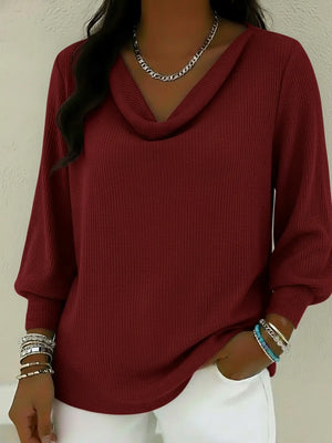 Cozy Vintage Cowl Neck Lantern Sleeve Pullover
