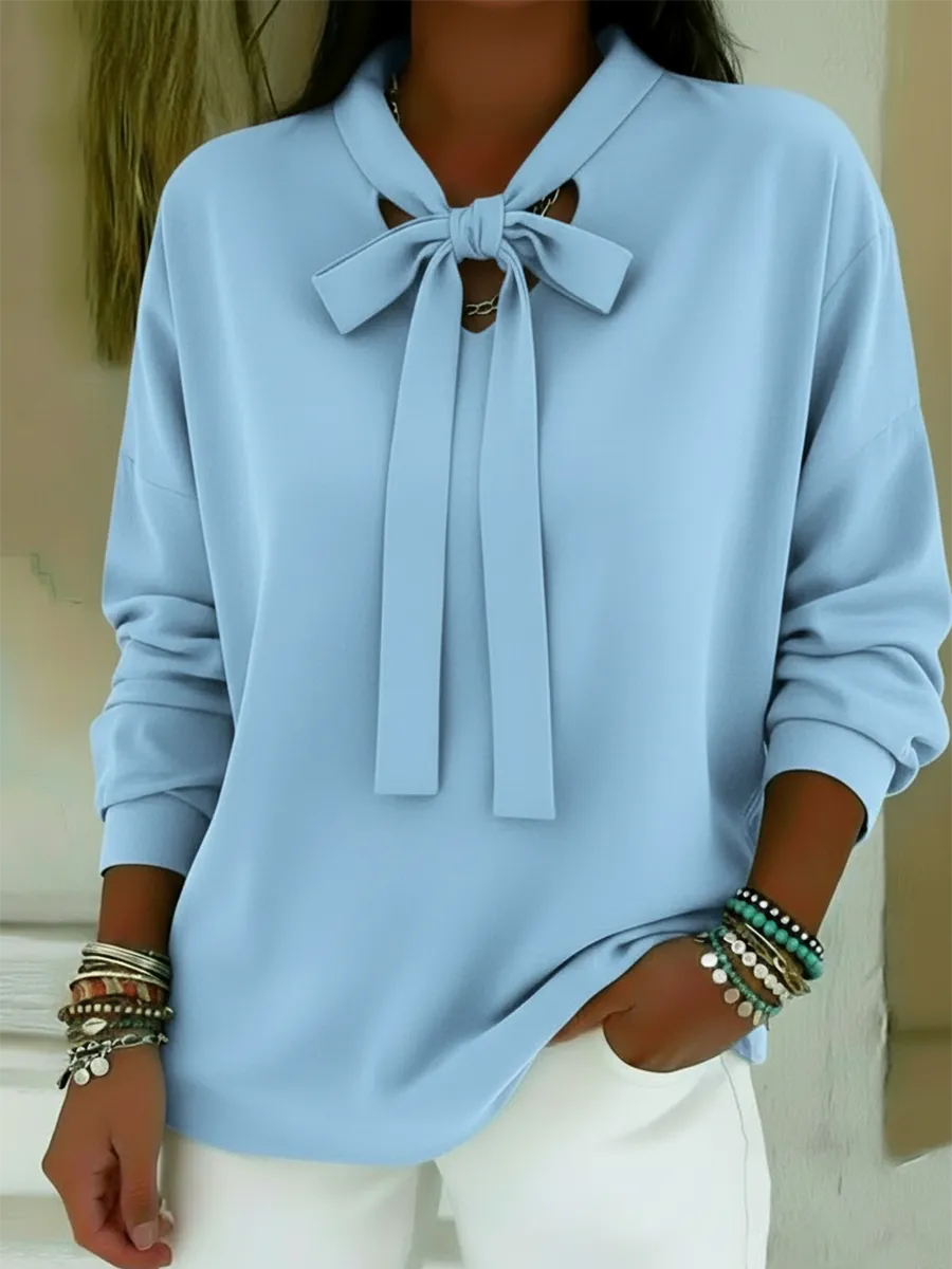 Vintage Bow-tie Neck Long-sleeved Blouse