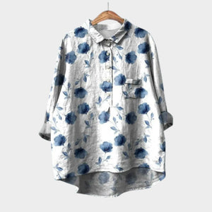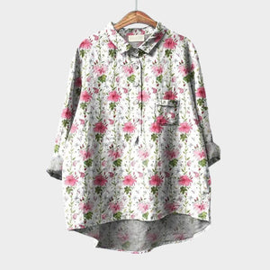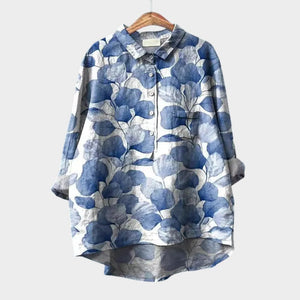 Elegant Women's Long Sleeve Floral Shirt - Lightweight Cotton Linen Button-Down Top for Casual Wear
