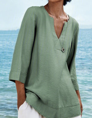 Women's V-neck Wrist-Length Sleeve T-shirt Top