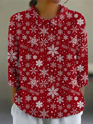 Vintage Christmas Snowflake Art Print Buttoned Cardigan Sweater