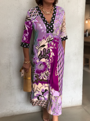 The vibrant floral print and polka dot patchwork create a unique, artistic, and stylish design.