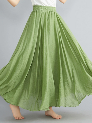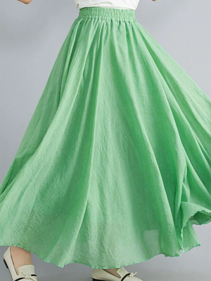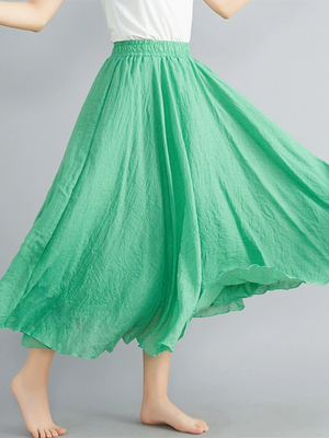 Women's Free Elastic Linen Skirt-forest Color