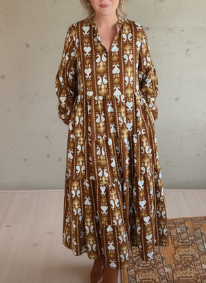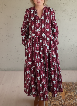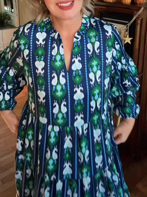 Women's Retro Vertical Striped Floral Print V-Neck Midi Dress