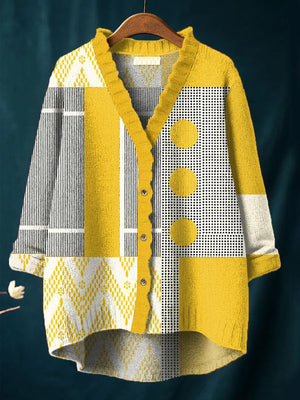 Women's Vintage Abstract Geometric Art Print Sleeveless Cotton Pocket Wrap Dress