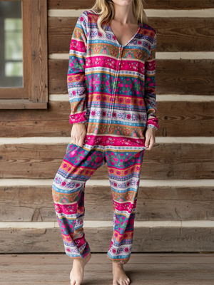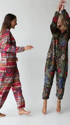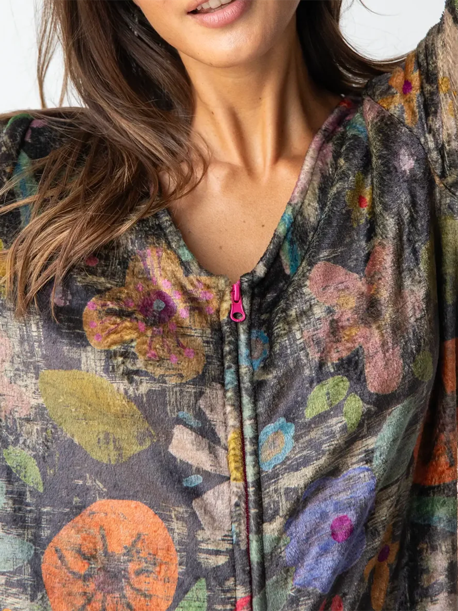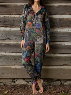 Soft and Comfortable Floral Print V-neck Zip-up Jumpsuit