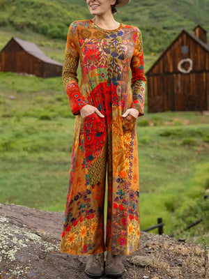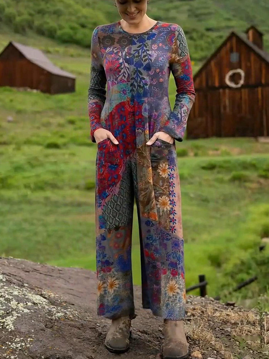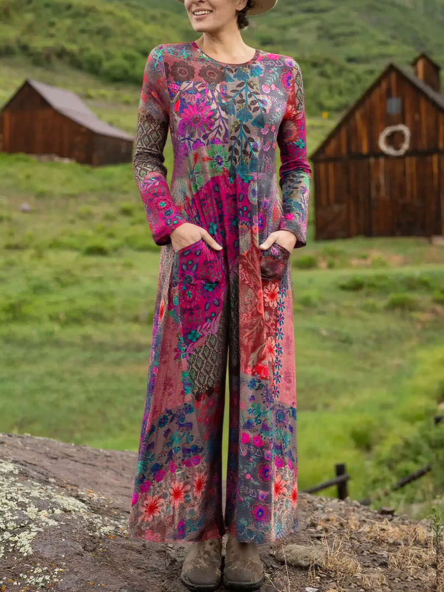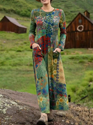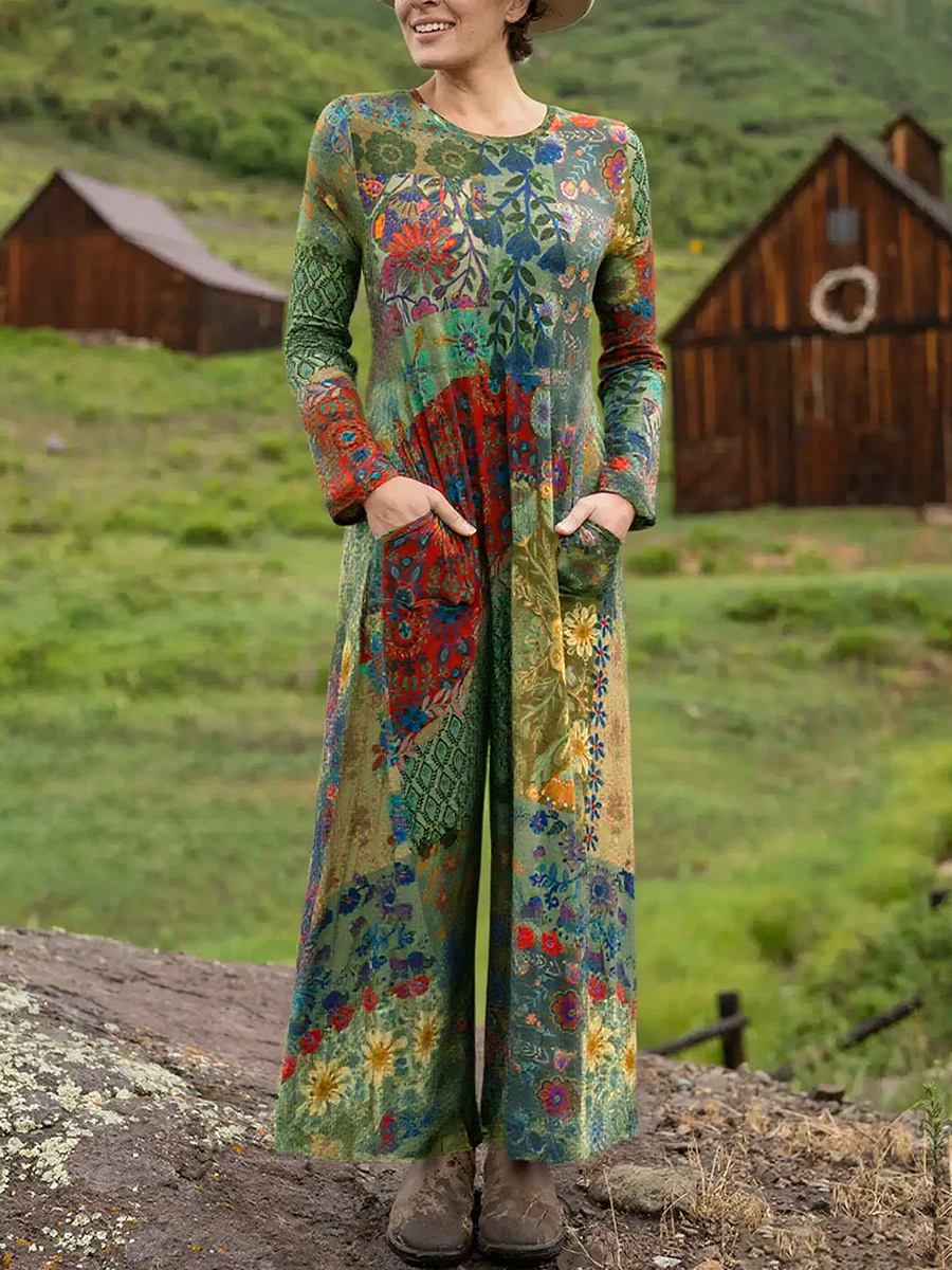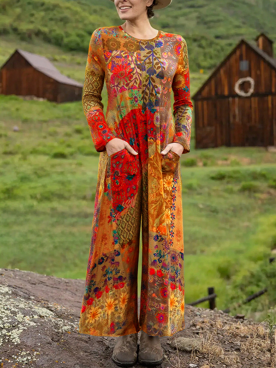 Women's Boho Natural Floral Print Stretch Jumpsuit