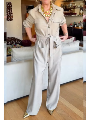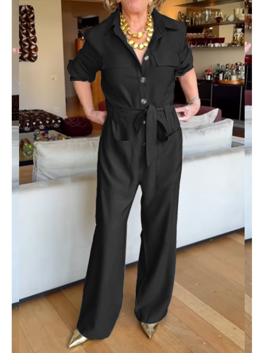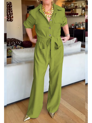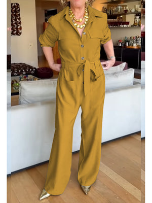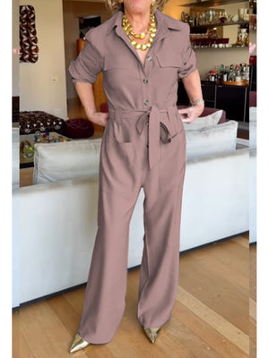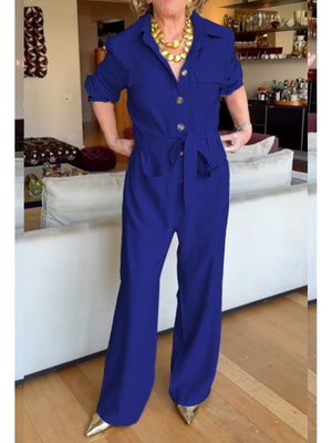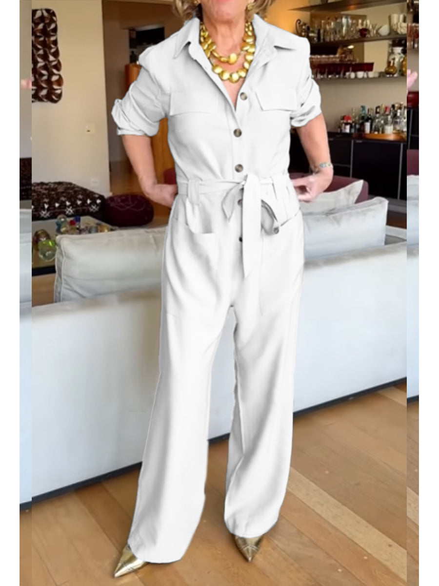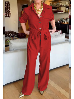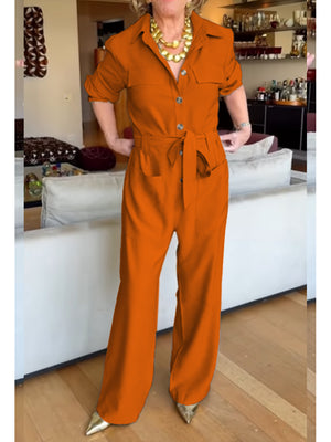 Women's Casual Cotton Long Sleeve Pocket Jumpsuit