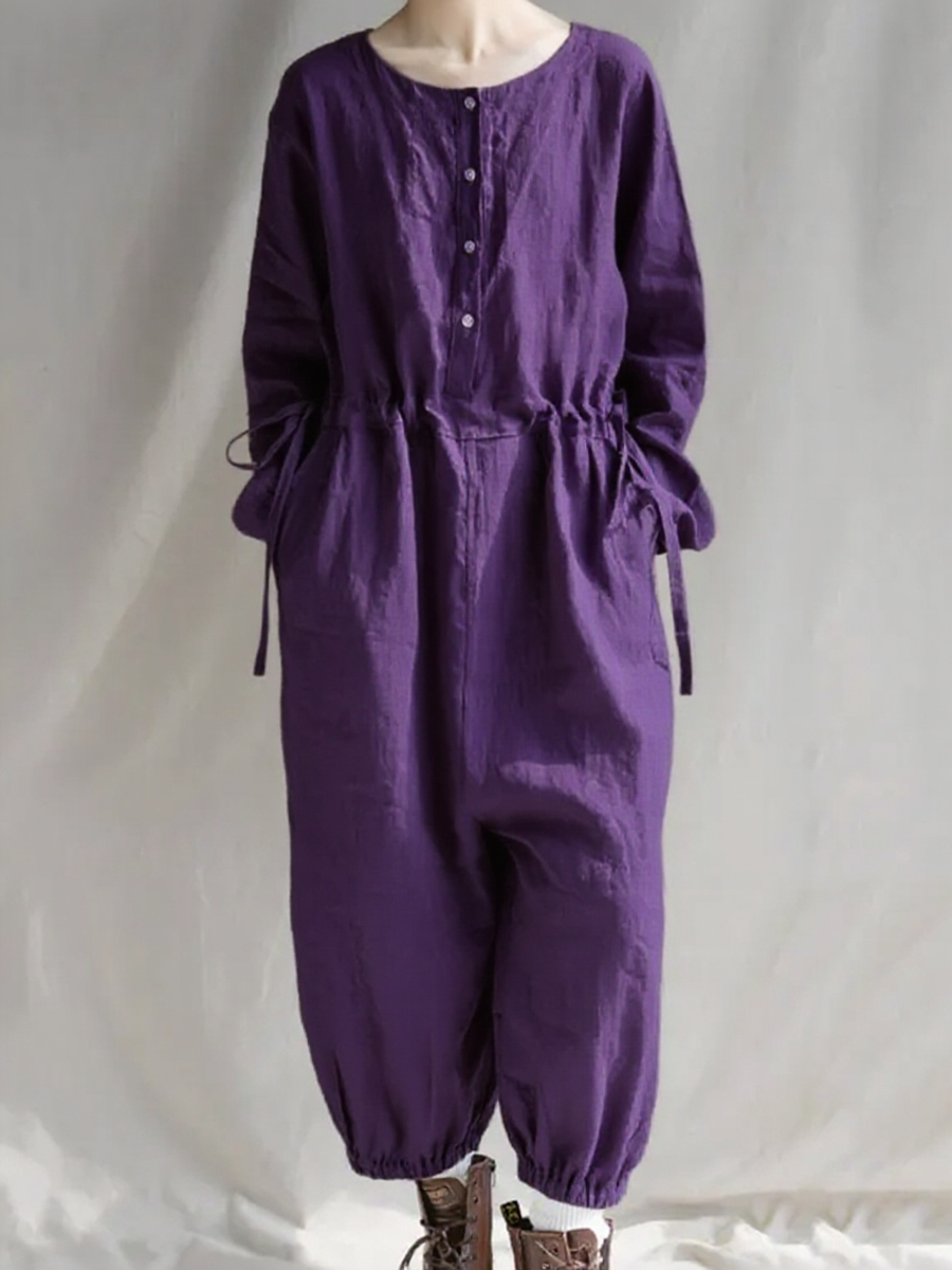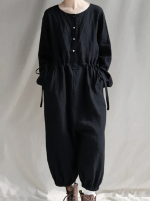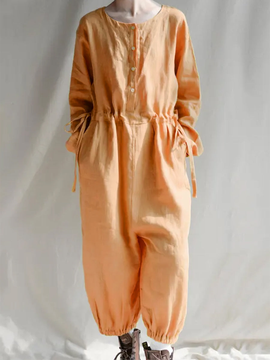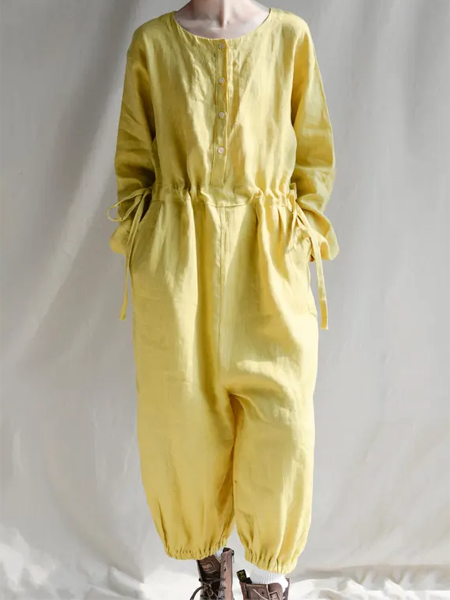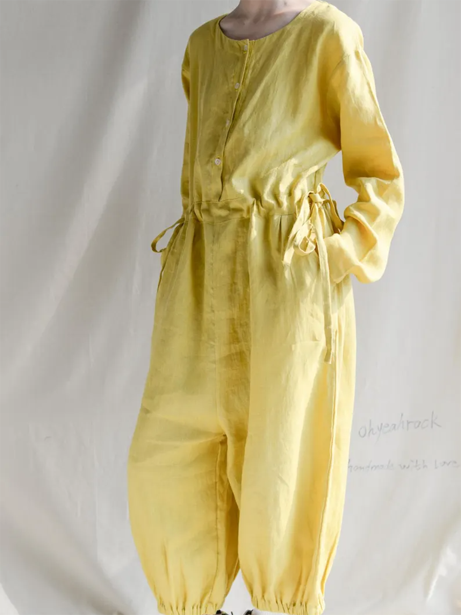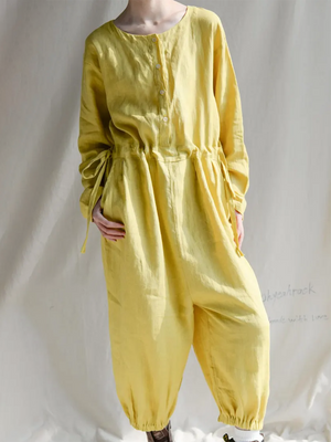 Women's Loose Waist Drawstring Organic Linen Jumpsuit