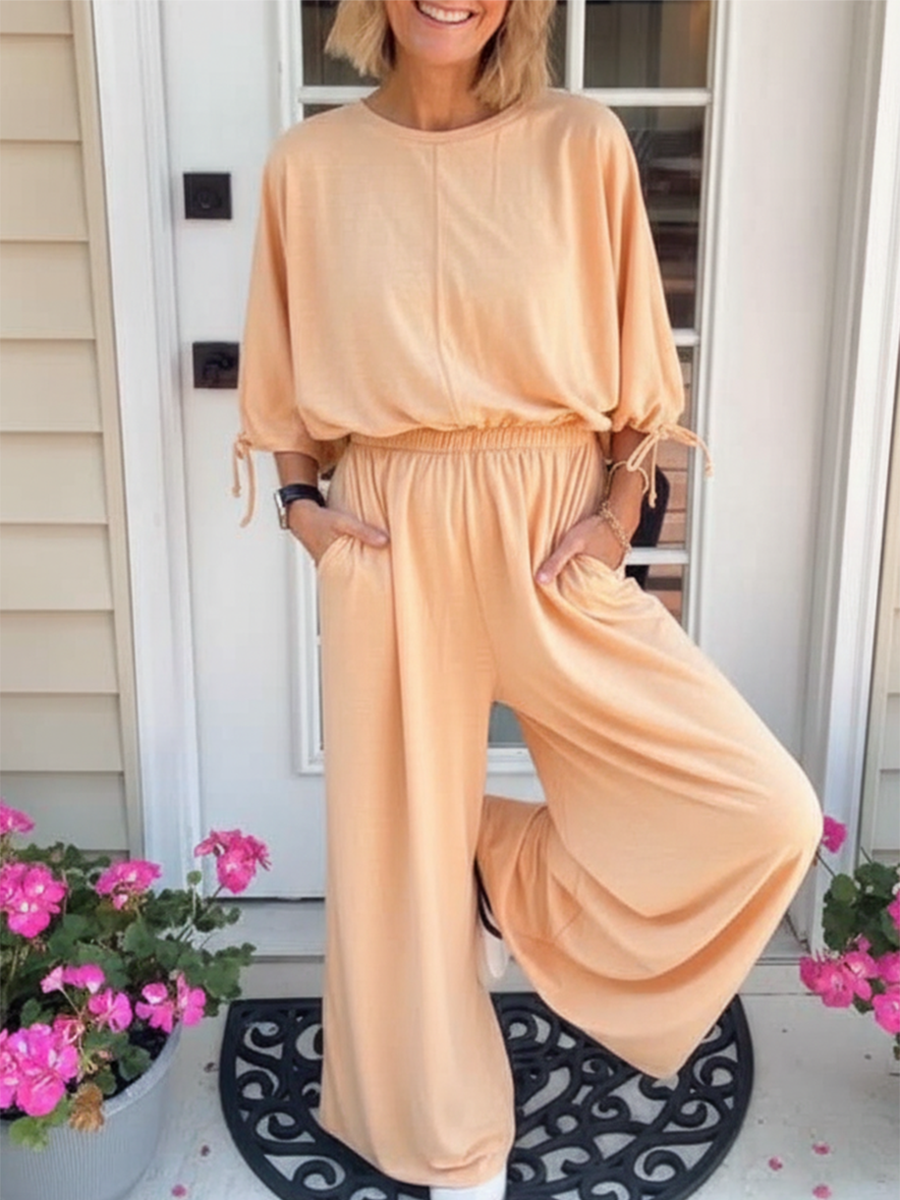 Women's Soft Cotton Casual Cuff Tie Solid Color Jumpsuit