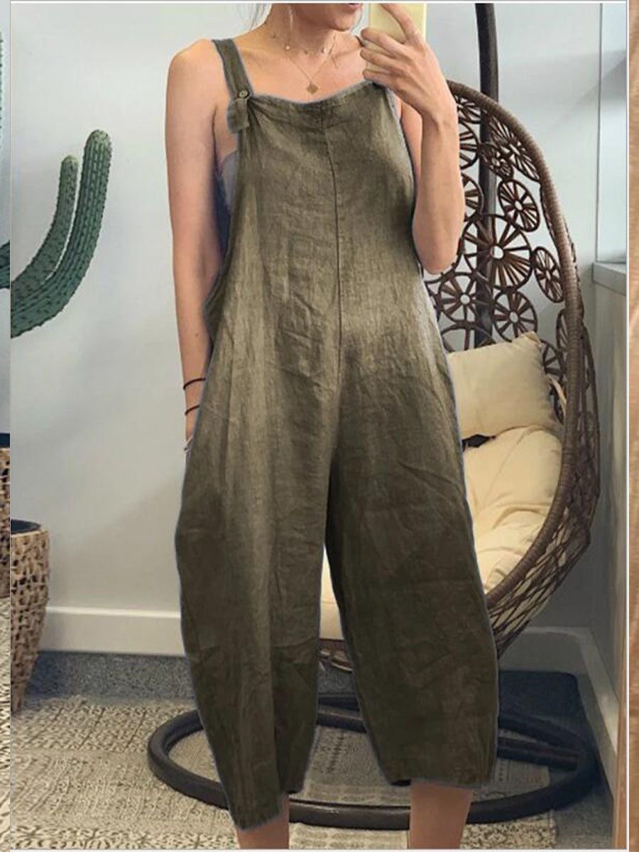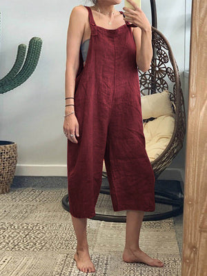 Women's Solid Color Cotton Overalls Three-Quarter Loose Casual Overalls Jumpsuit