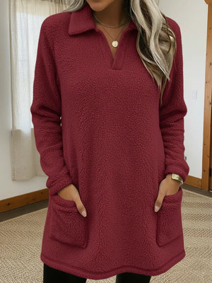 Cozy Polo-neck Coral Fleece Sweatshirt