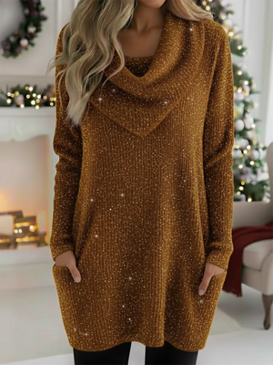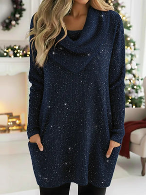 Christmas Retro Cowl Collar Shiny Knitted Sweater
