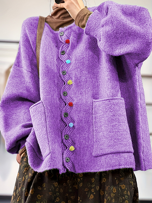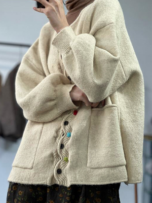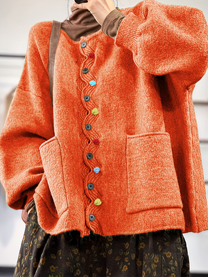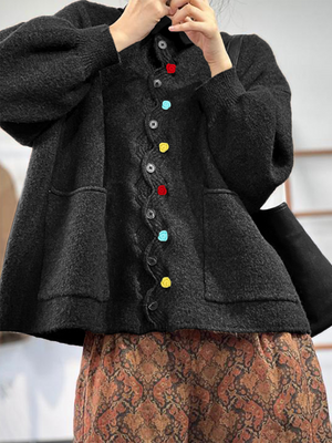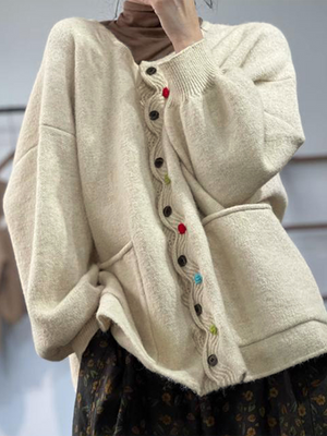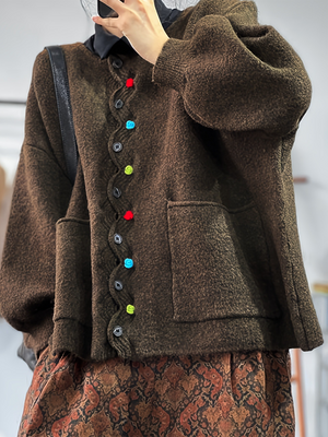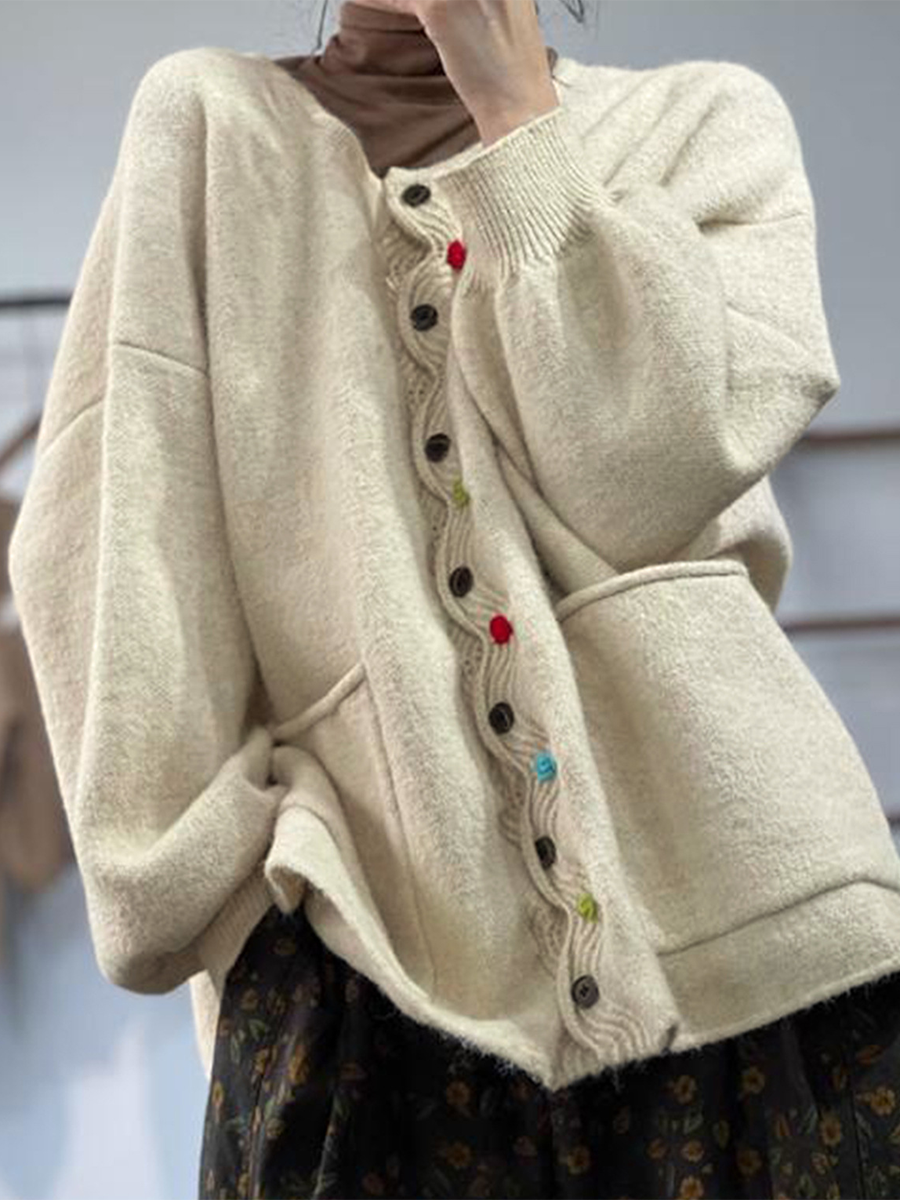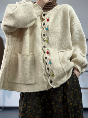 Colorful Button Thick Wool Loose Cardigan Sweater