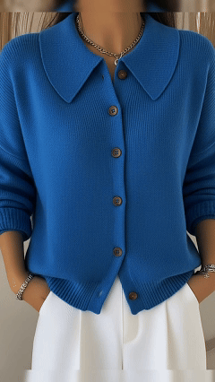 Yes, this classic Peter Pan collar sweater can be worn as a top or as a cardigan with other pieces.
