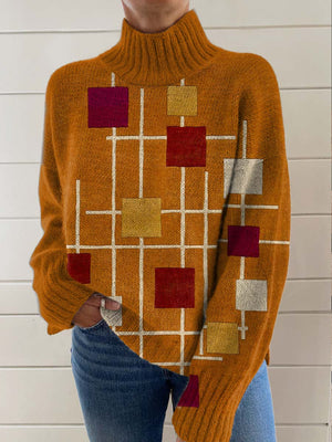 womens-abstract-geometric-pattern-art-print-knit-turtleneck-pullover-sweater-815n