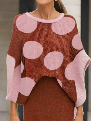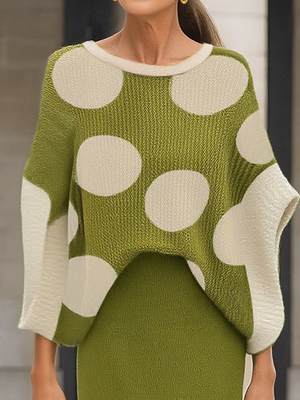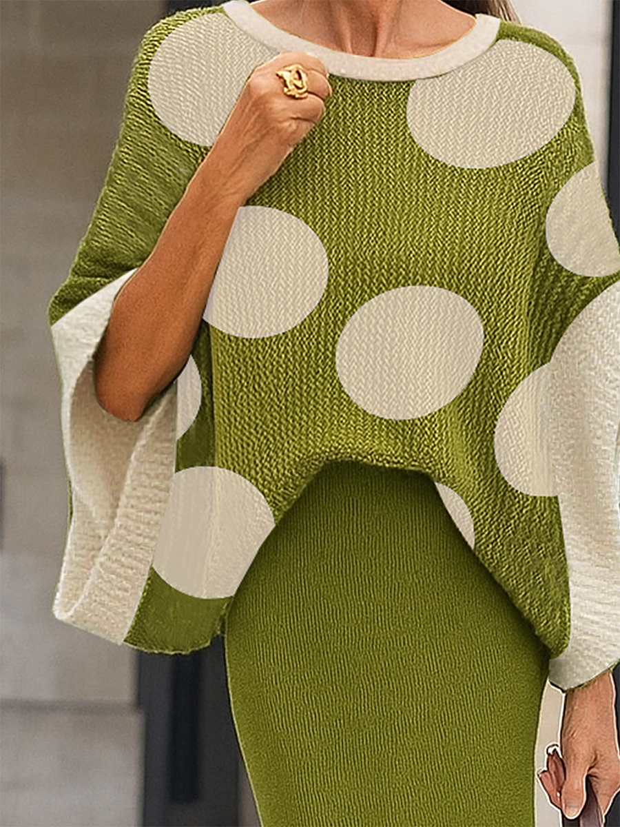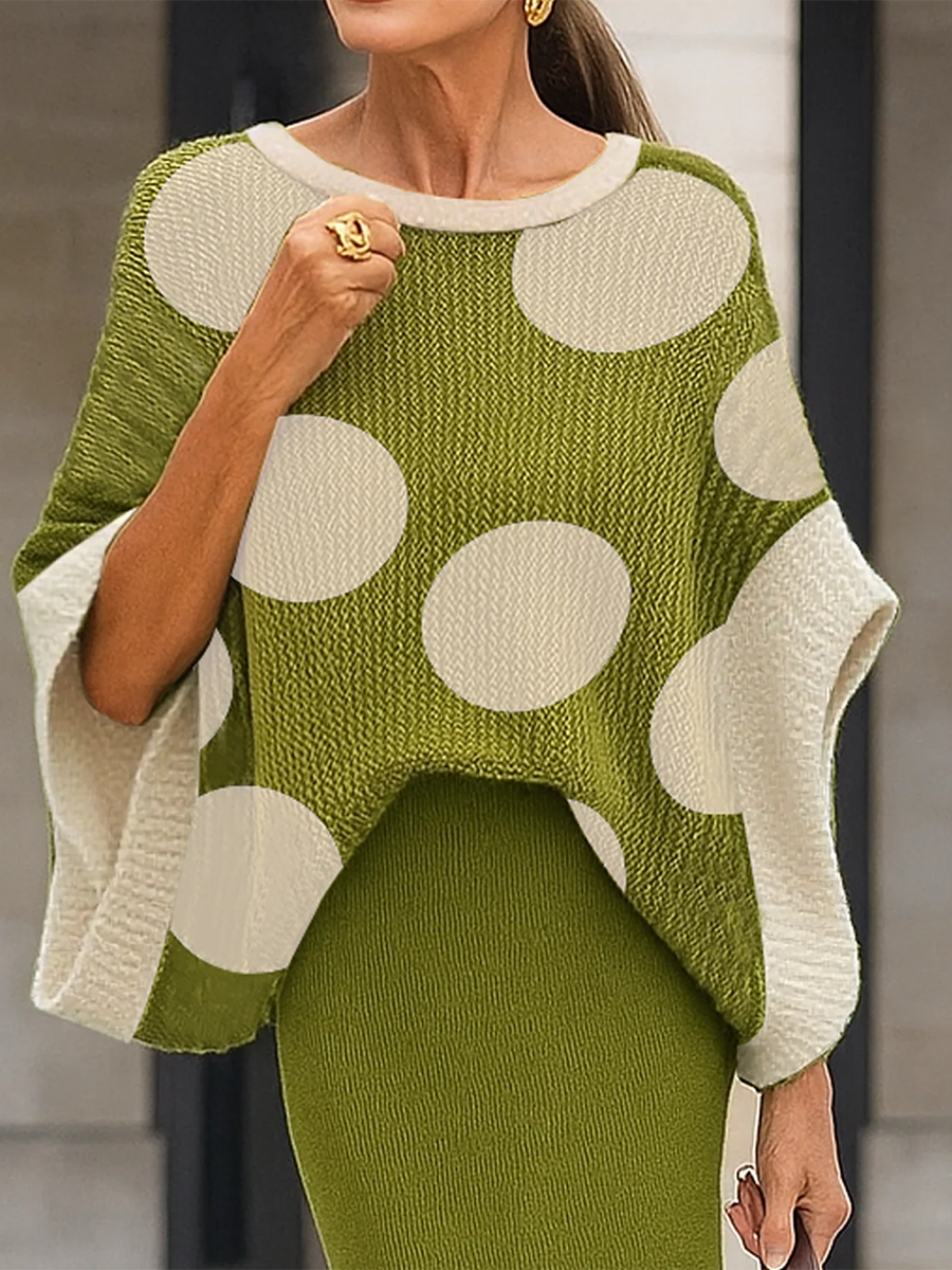 Women's Batwing Sleeve Polka Dot Knitted Top Sweater