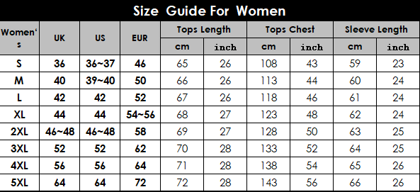 S, M, L, XL, 2XL, 3XL, 4XL, 5XL |