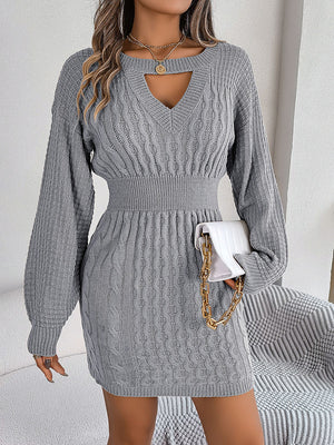 womens-hollow-lantern-sleeve-hip-sweater-dress