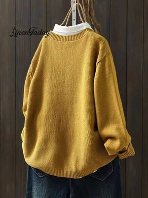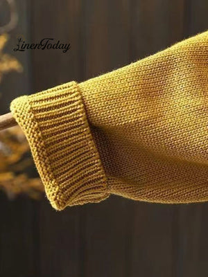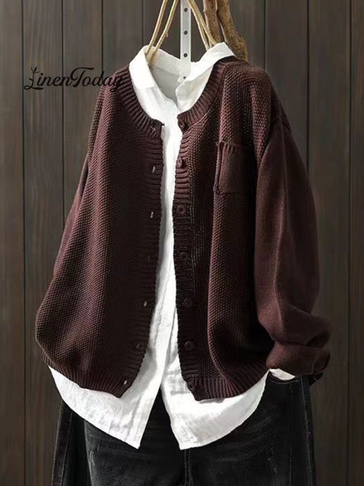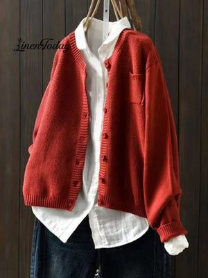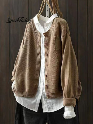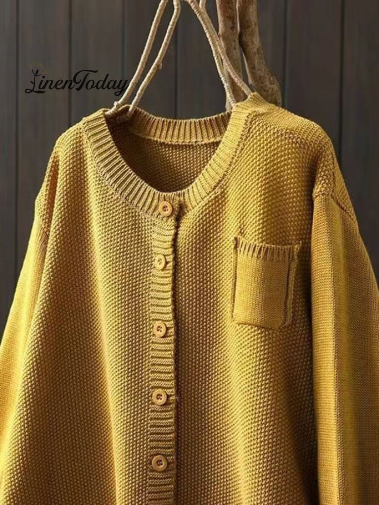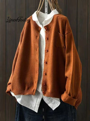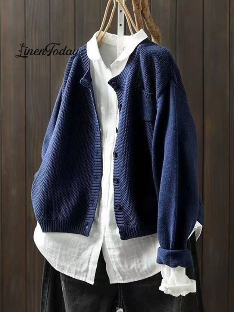 Women's Retro Art Loose Casual Button Front Sweater