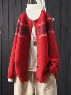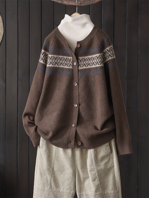 Women's Soft Totem Print Soft Button Cardigan Sweater