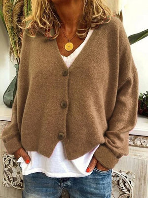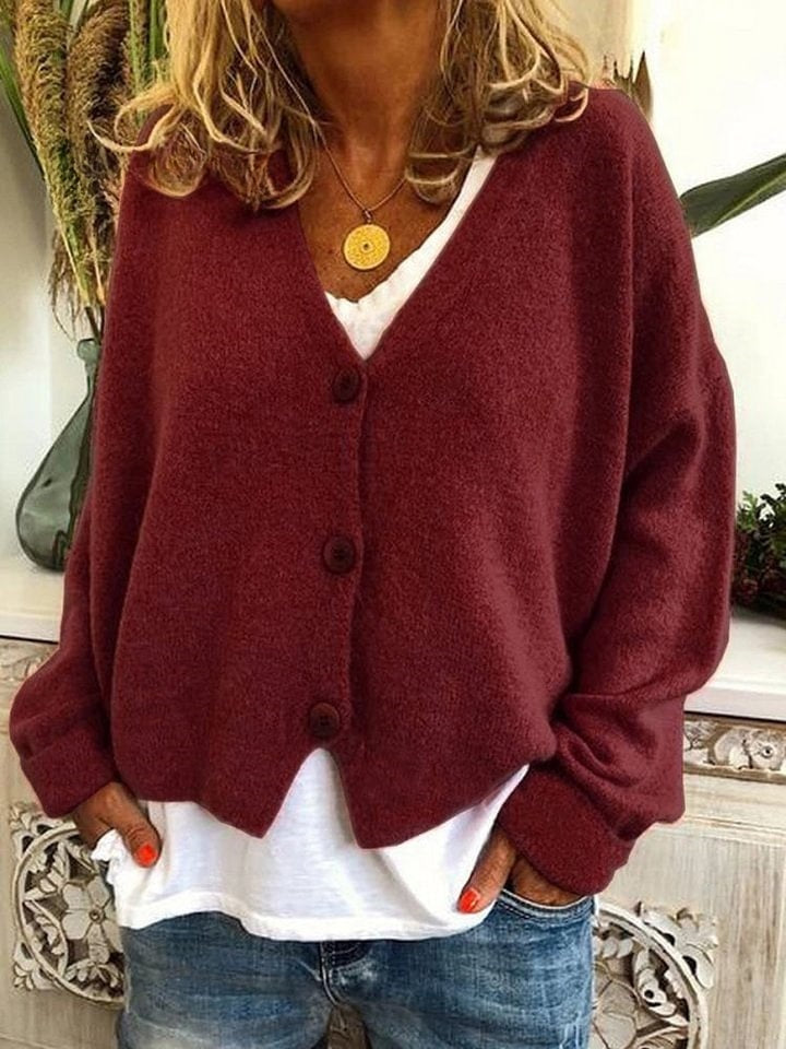 Women's Solid Color Buttoned Casual Cardigan Sweater