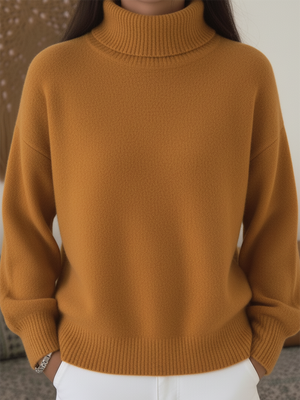 Women's Solid Color High Collar Loose Lantern Sleeve Sweater Top