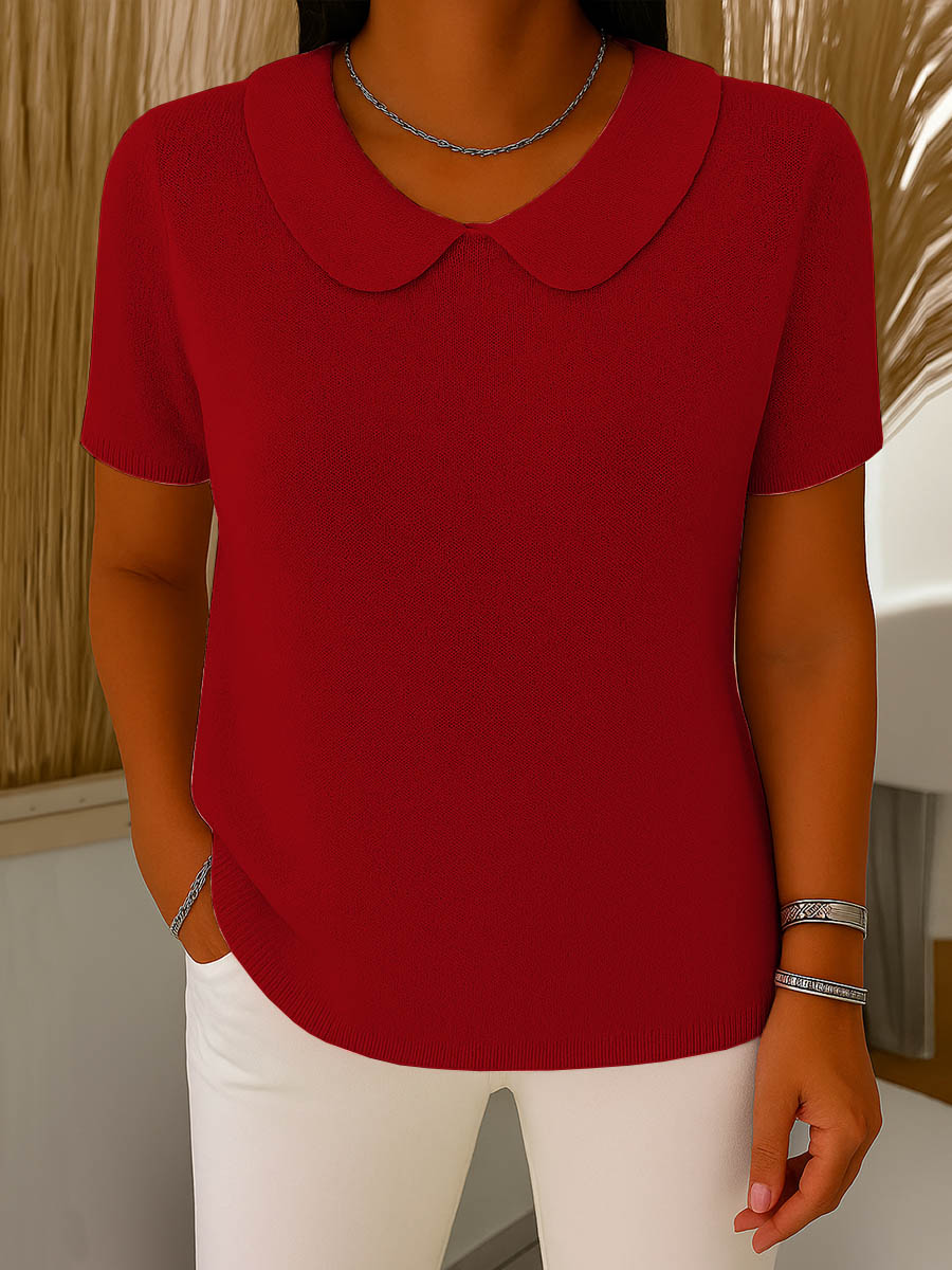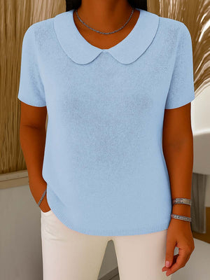 Women's Solid Color Peter Pan Collar Short Sleeve Knit Sweater