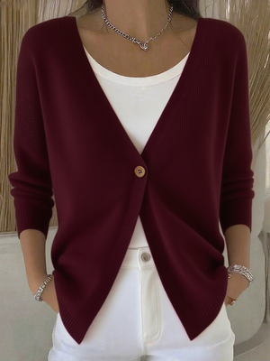 Women's V-neck One-button Knitted Cardigan Sweater