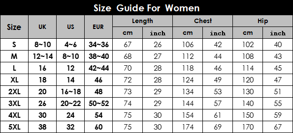 S, M, L, XL, 2XL, 3XL, 4XL, 5XL |