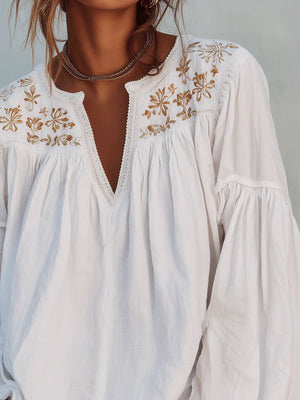 Women's Retro Floral Pattern Art Casual Cotton Linen Shirt