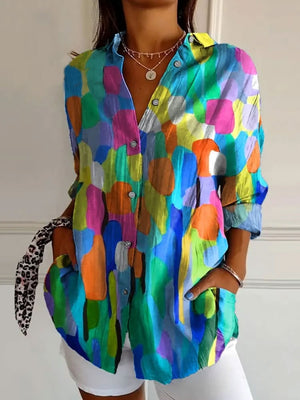Abstract Summer Floral Garden Printed Women's Casual Cotton Shirt