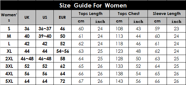 S, M, L, XL, 2XL, 3XL, 4XL, 5XL |