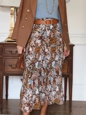 Autumn and Winter Floral Print Elastic Waist Skirt