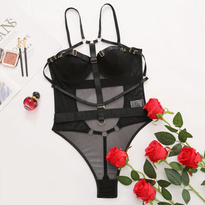 Home Contrast Lace Underwire Teddy Bodysuit Set