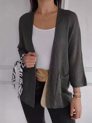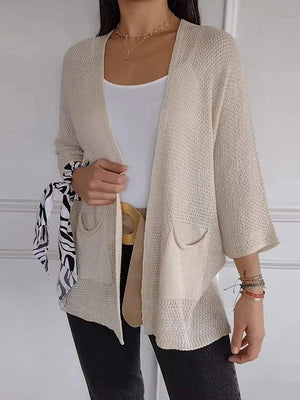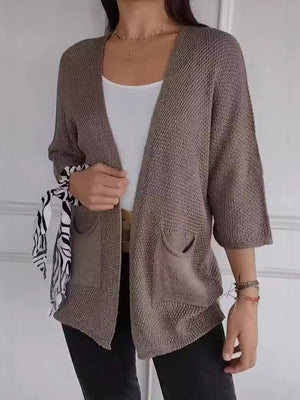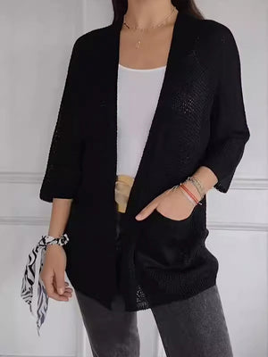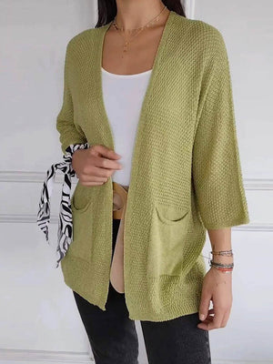 Women's Solid Color 3/4 Sleeve Casual Cardigan Knit Top