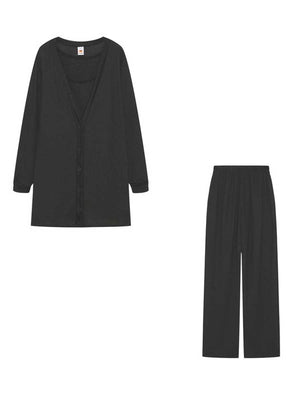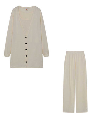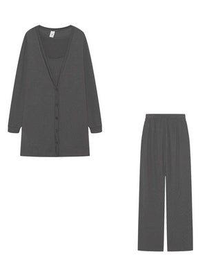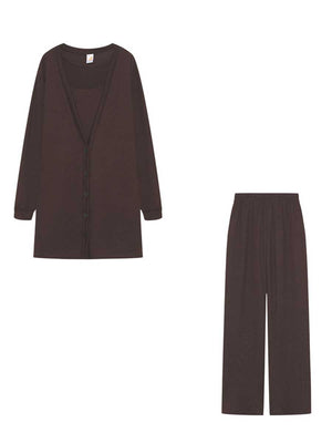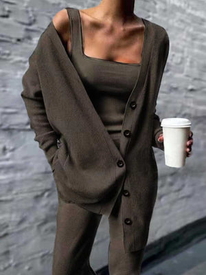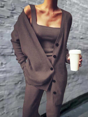 Women's Solid Color Casual Elegant Knitted Three-piece Jacket Vest Pants Set