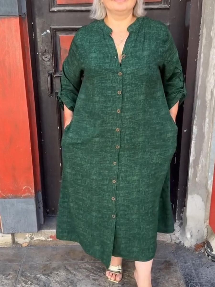 Women's Loose Button-down Shirt Cotton and Linen Dress