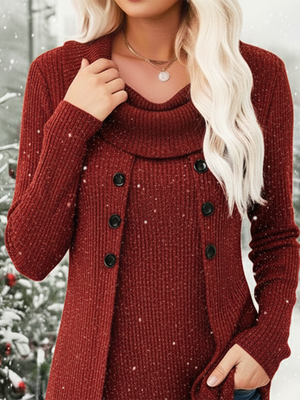 Christmas Cowl Neck Shiny Sequin Knitted Sweater Top