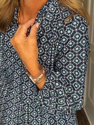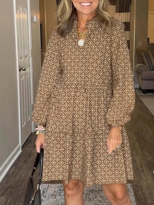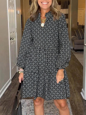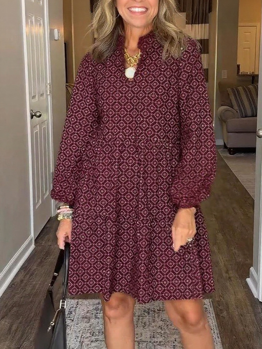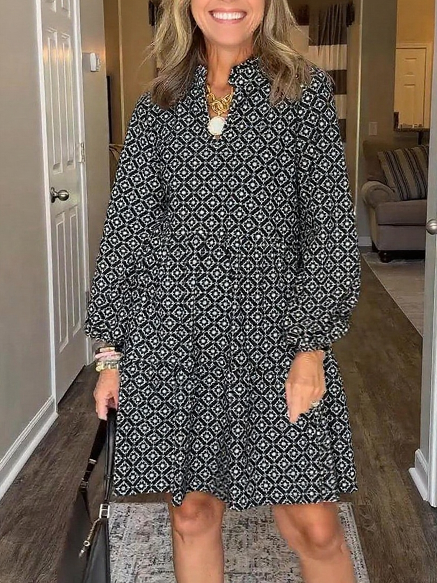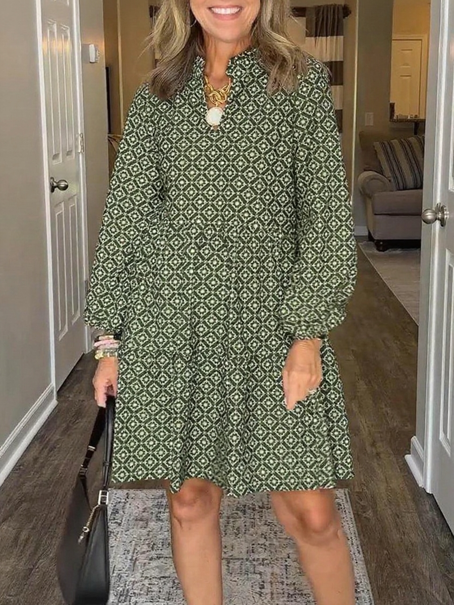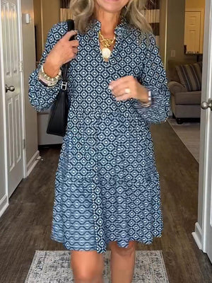 Women's Comfortable Prismatic Pattern Printed V-neck Cotton Dress