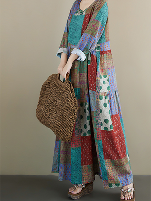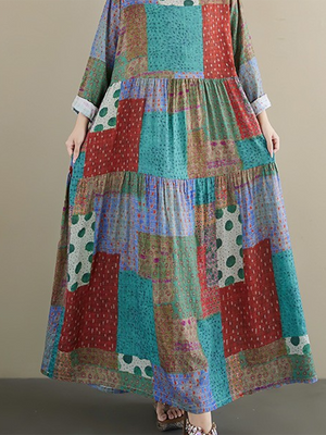 Women's Loose Plaid Polka Dot Print A-Line Dress