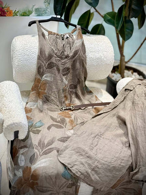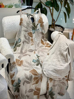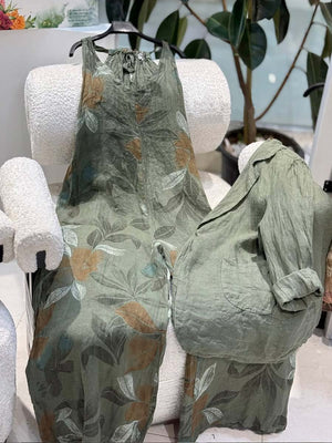 Women's  Solid Color V-Neck Sleeveless Retro Print Casual Cotton and Linen Wide Leg Jumpsuit